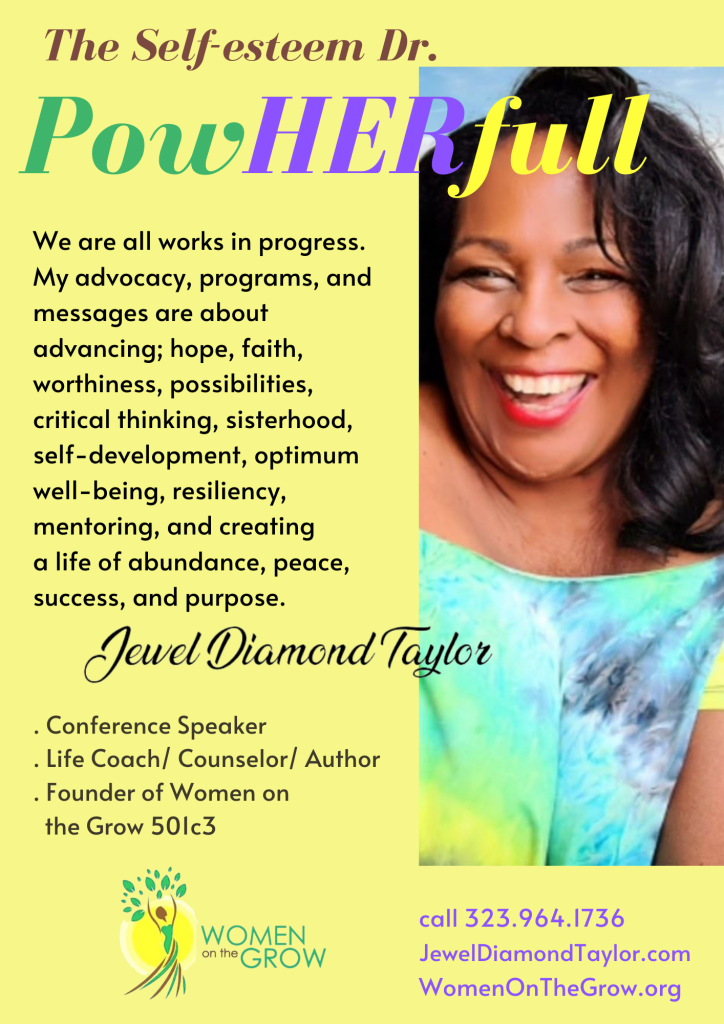 Jewel I would like to thank you for being a rainbow in my life. I thank God for your love, support and guidance. As I reflect over the years how you have been here for me, I really appreciate you and I Thank you for creating Women On The Grow. You are an answered prayer. In 1993 I had an emotional breakdown, I was mad at God, I didn’t understand why I had to have dysfunctional parents, both of them were on drugs, on top of that my mother was mentally ill. I was frustrated. I had just moved back to Los Angeles California from Chico California where I experienced racism first hand and I didn’t know how to deal with it. There were so many things going wrong in my life and I needed guidance ASAP.